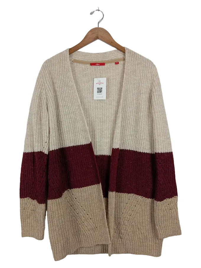 Damen Strickjacke Gr. 40 L Langarm Rippstrick Lochmuster Mehrfarbig