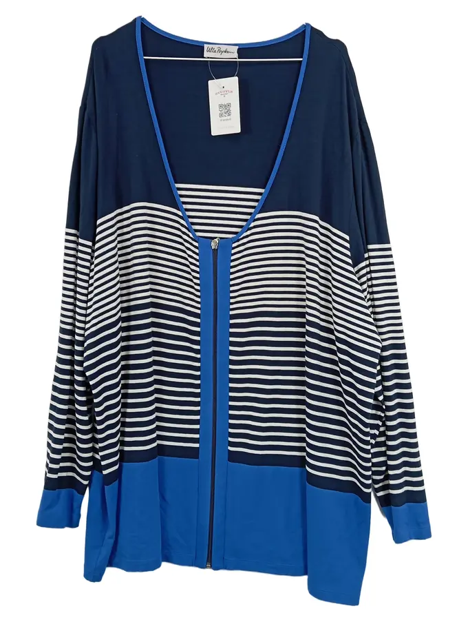 Damen Strickjacke Gr. 52/54 Maritim Blau Weiß Gestreift