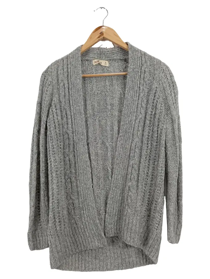 Damen Strickjacke Gr. S Grau Zopfstrickmuster Cardigan