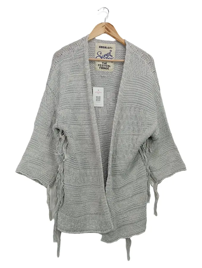 Damen Strickjacke Grau 34/XS Fransen Bohemian Cardigan