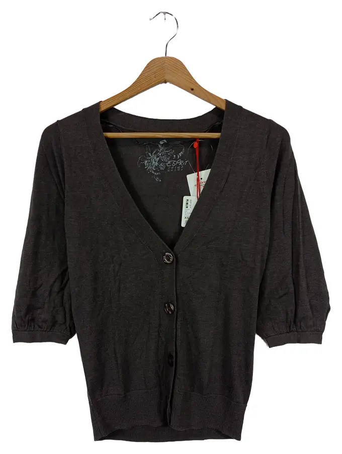 Damen Strickjacke Grau Gr. 34/XS Viskose Baumwolle Klassisch Elegant