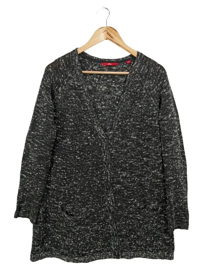 Damen Strickjacke Grau Gr. 36/S Klassisch Casual Meliert Langarm