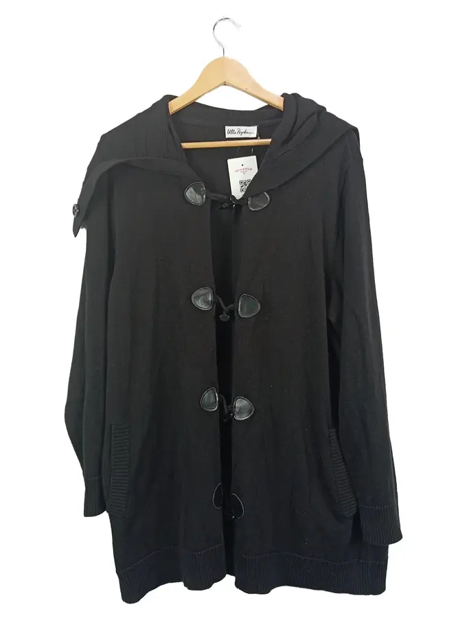 Damen Strickjacke Kapuze Knebelverschluss Schwarz Gr. 46/3XL Casual