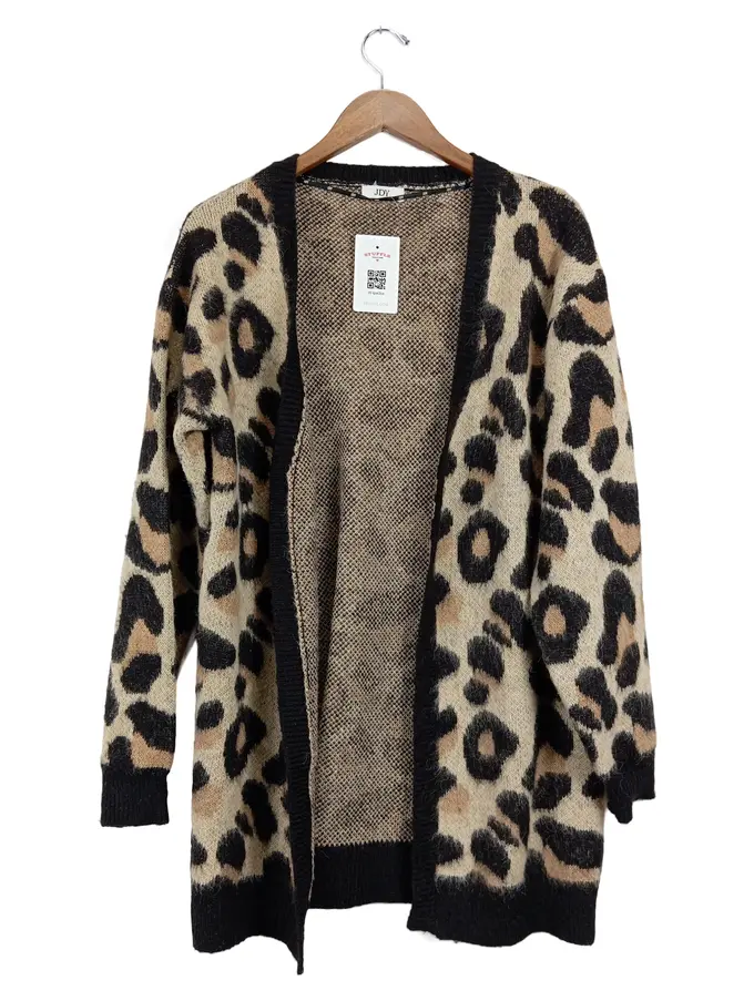 Damen Strickjacke Leo Animal Print Cardigan Gr. 38/M Mehrfarbig