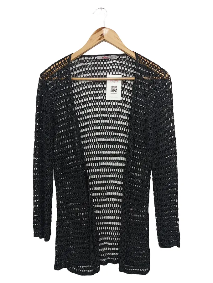 Damen Strickjacke Lochmuster Schwarz Gr. 38/M Cardigan