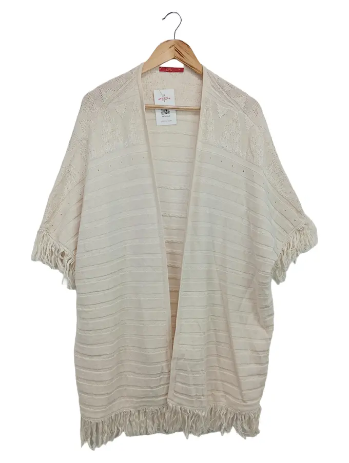 Damen Strickjacke M/38 Beige Bohemian Vintage Elegant Fransen