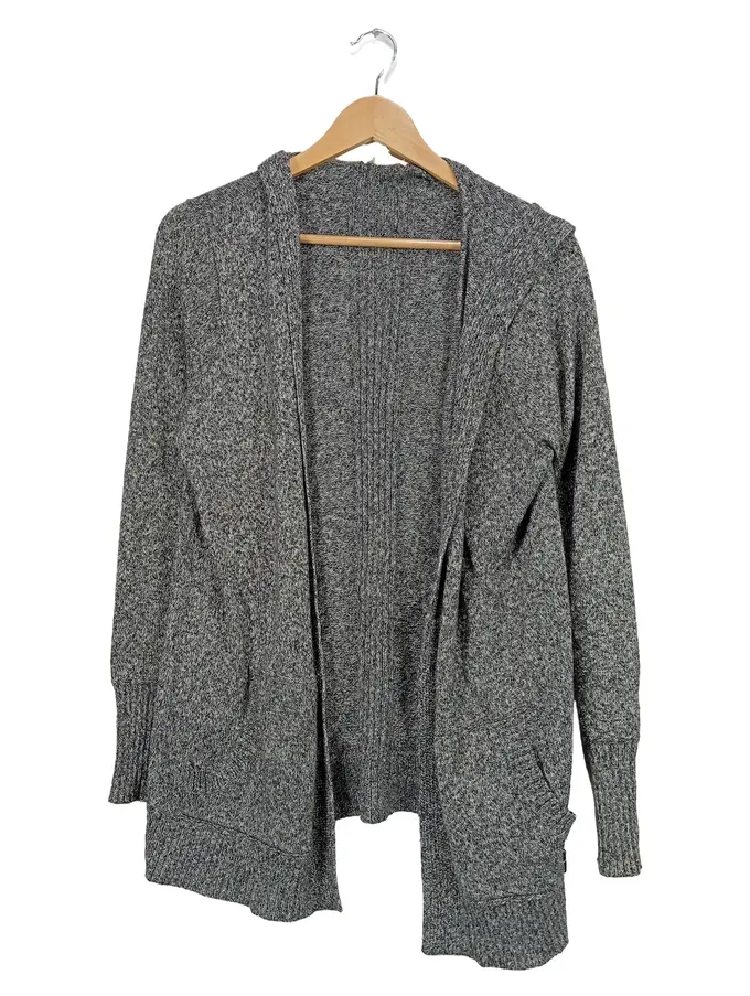Damen Strickjacke mit Kapuze Gr. L Grau Meliert Cardigan