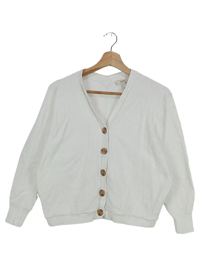 Damen Strickjacke Weiß Gr. 36/S Klassisch Casual Baumwolle