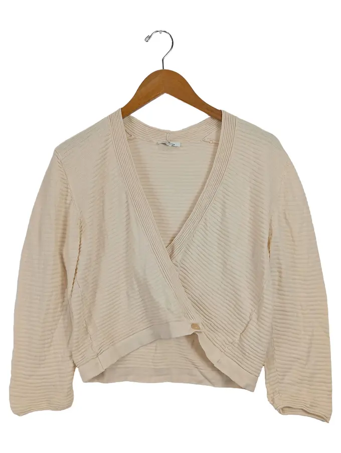 Damen Strickjacke Wickeloptik Beige Gr. XL Baumwolle