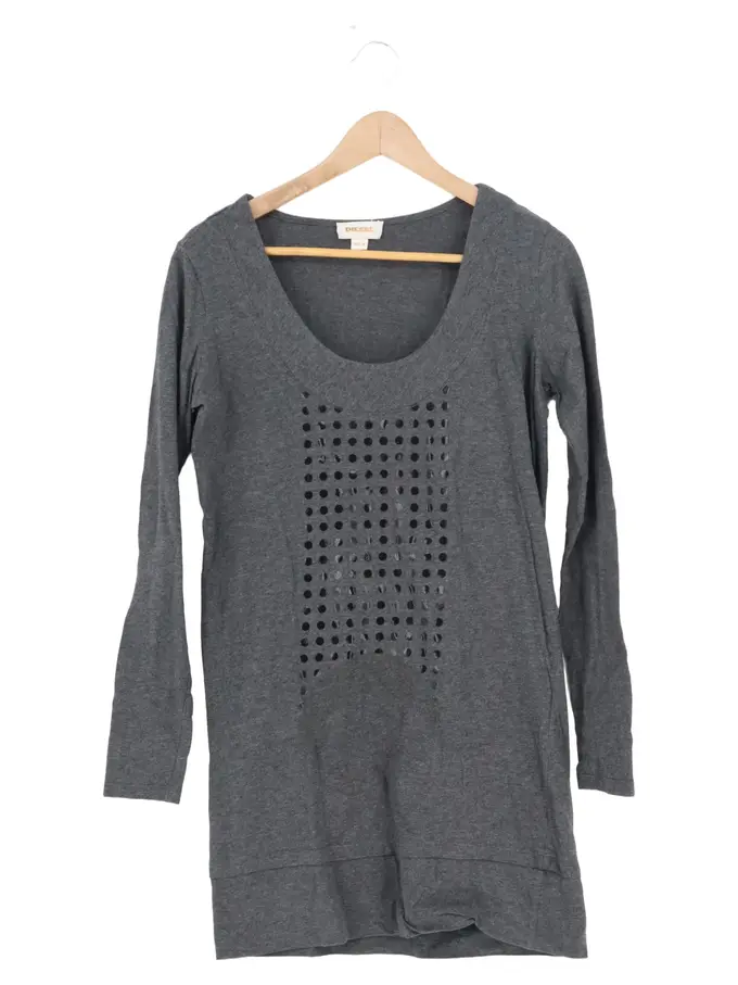 Damen Strickkleid Gr. 38/M Grau Casual Baumwolle Lochmuster