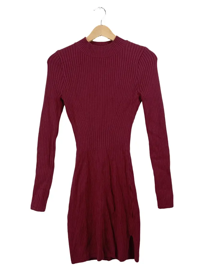 Damen Strickkleid Gr. S Bordeaux Rot Rippstrick Langarm Mini