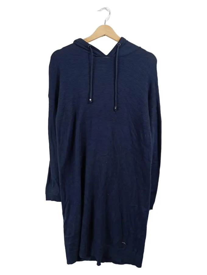 Damen Strickkleid Kapuze Hoodie Blau Gr. XS