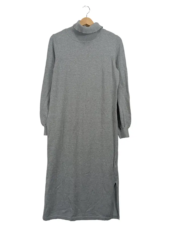 Damen Strickkleid Rollkragen Langarm Grau Gr. L Midikleid