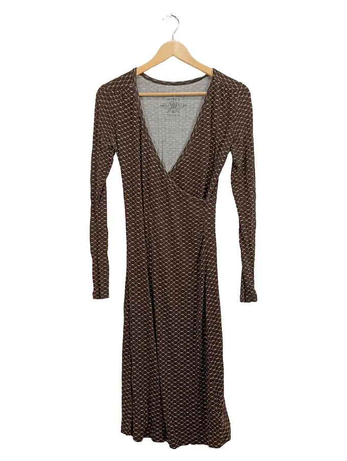 Damen Strickkleid Wickelkleid Braun Gemustert Gr. 36 S
