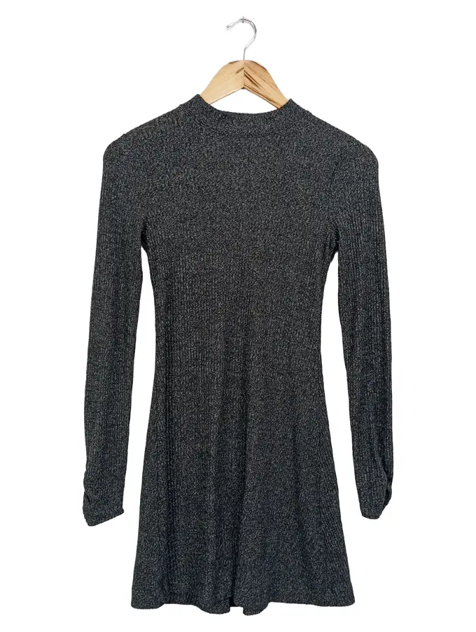 Damen Strickkleid XS 34 Schwarz Meliert Rippstrick Elegant Streetwear