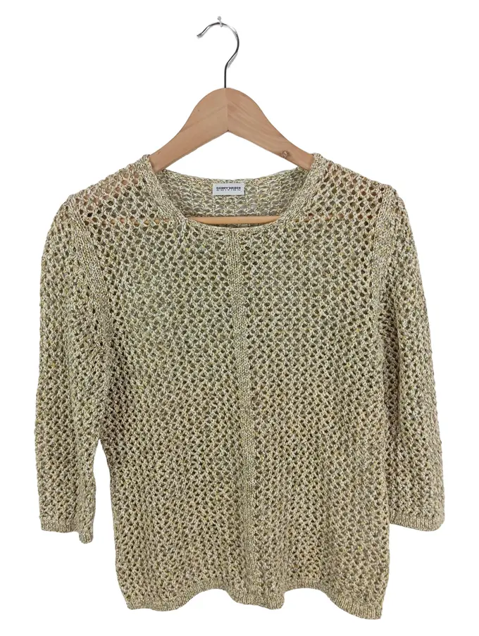 Damen Strickpullover Gold Gr. 30-40 Modisch Lochmuster