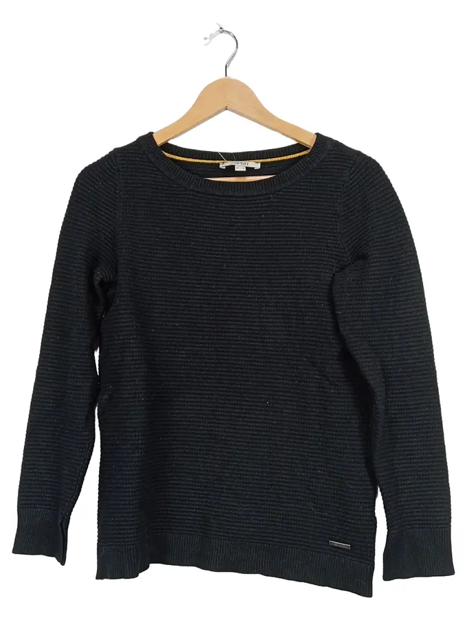 Damen Strickpullover Gr. S Schwarz Rippstrick Langarm Basic