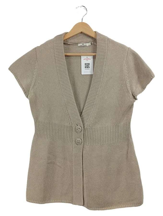 Damen Strickweste Beige Gr. XL Kurzarm Knopfleiste