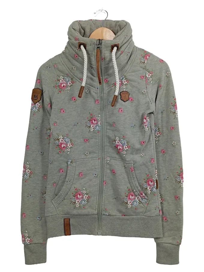 Damen Sweatjacke Blumenmuster Gr. XS Grau Stehkragen