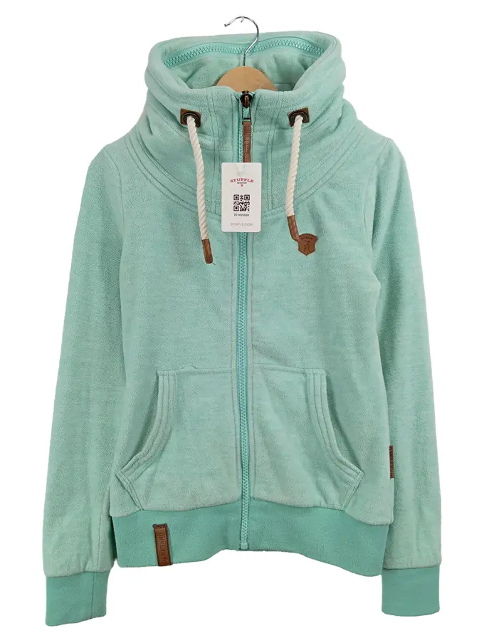 Damen Sweatjacke Fleece Kapuze Türkis Gr. XS