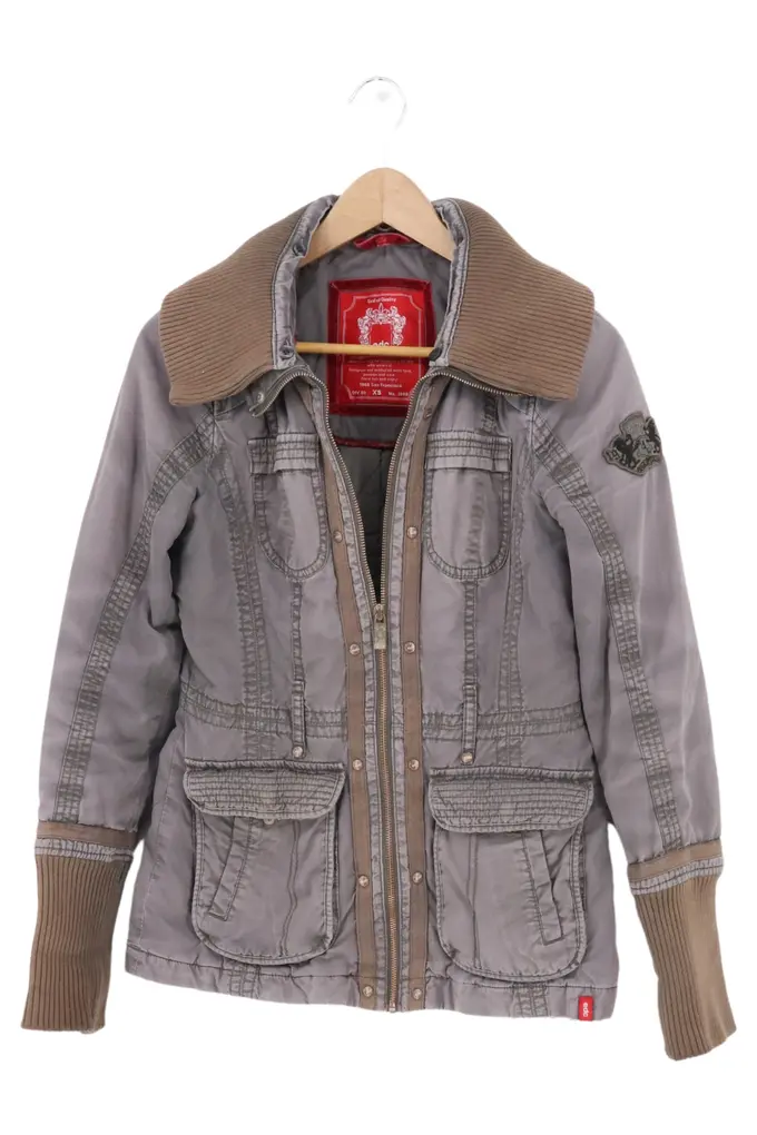 Damen Sweatjacke Gr. 32/XS Grau Casual Kapuze Rippstrick