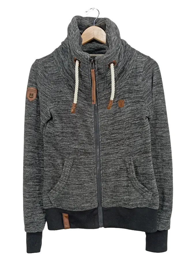 Damen Sweatjacke Gr. 34/XS Grau Meliert Reißverschluss Logo