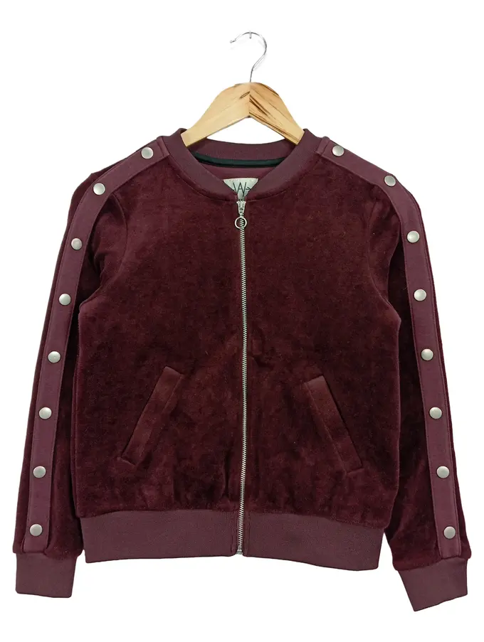 Damen Sweatjacke Gr. 34/XS Rot Samt Streetwear Bomberjacke Reißverschluss