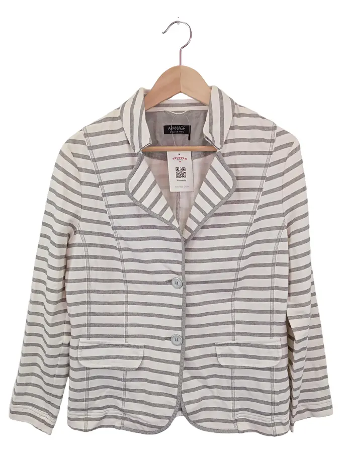 Damen Sweatjacke Gr. 44/XXL Grau Gestreift Klassisch Casual