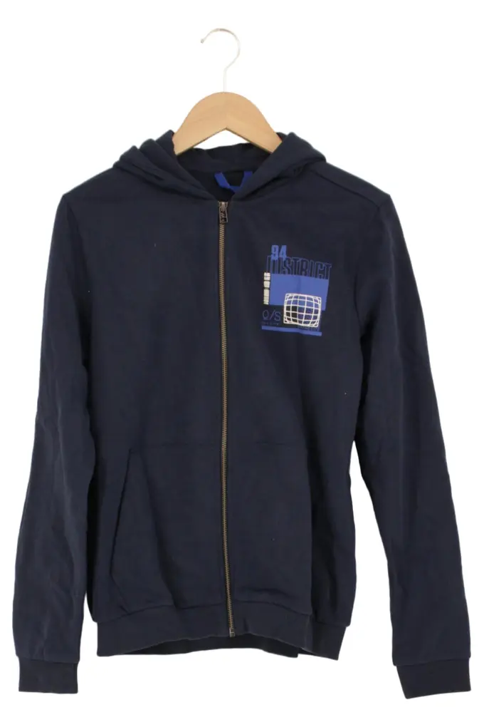 Damen Sweatjacke Hoodie Gr. 36/S Blau mit Reißverschluss & Print