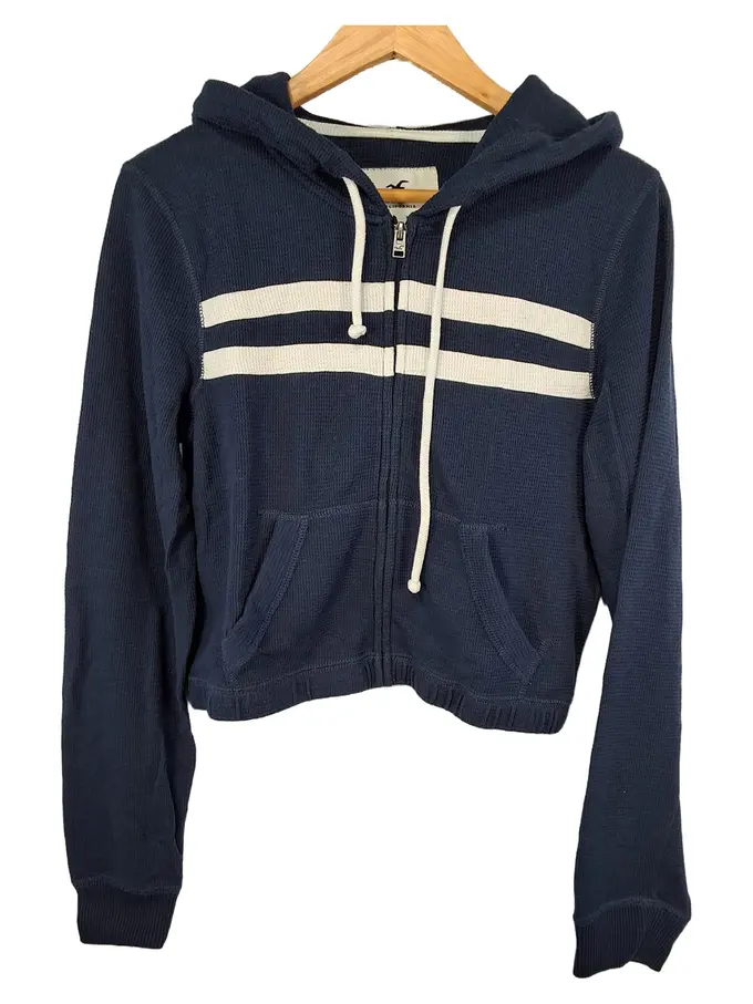 Damen Sweatjacke Kapuze Reißverschluss Cropped Navy Blau Gr. M