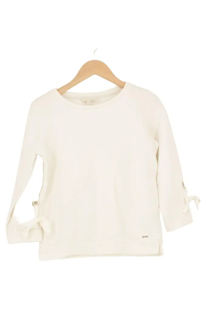 Damen Sweatshirt Gr. 34/XS Weiß Langarm mit Schleifen