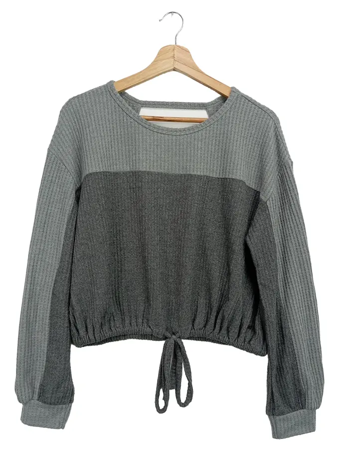 Damen Sweatshirt Grau 34/XS Casual Cut-Out Rippstrick Langarm