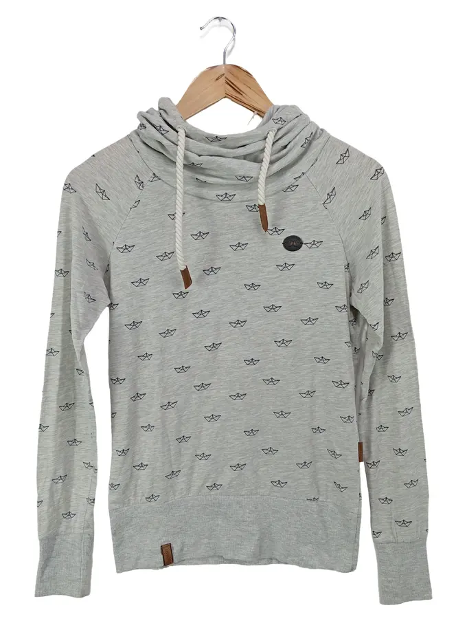 Damen Sweatshirt Grau 36/S Casual Hoodie Papierboote Muster