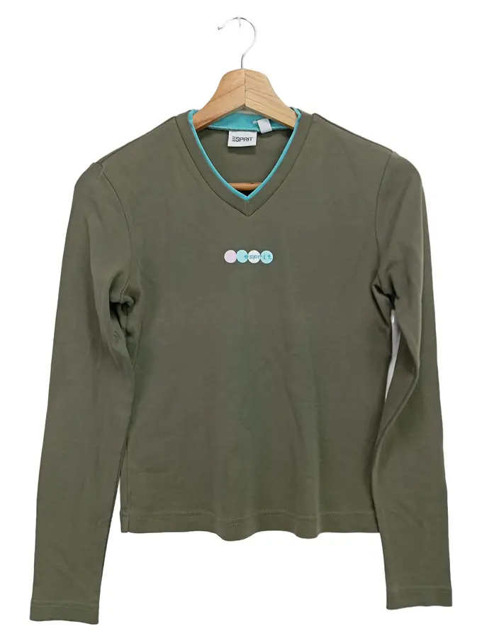 Damen Sweatshirt Grün Gr. 34/XS Klassisch Preppy Streetwear Langarm