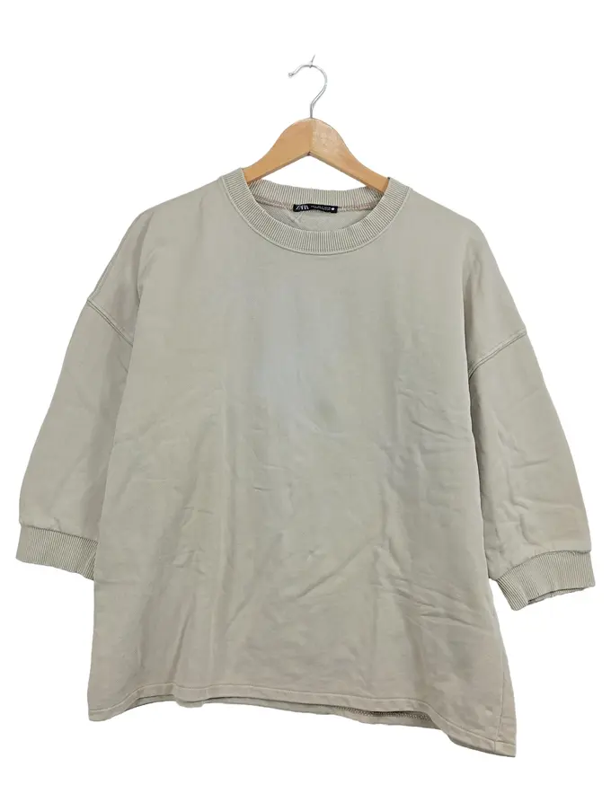 Damen Sweatshirt Pullover Beige Gr. 36 S Basic Oversized 3, 4-Arm