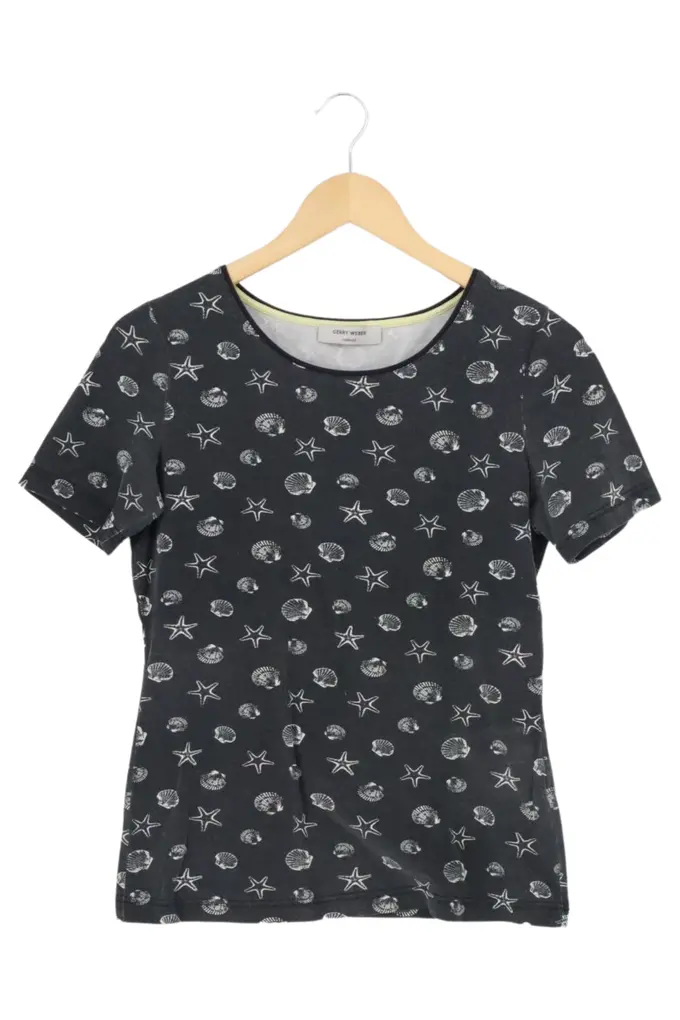 Damen T-Shirt 36/S Schwarz Muscheln Sterne Kurzarm