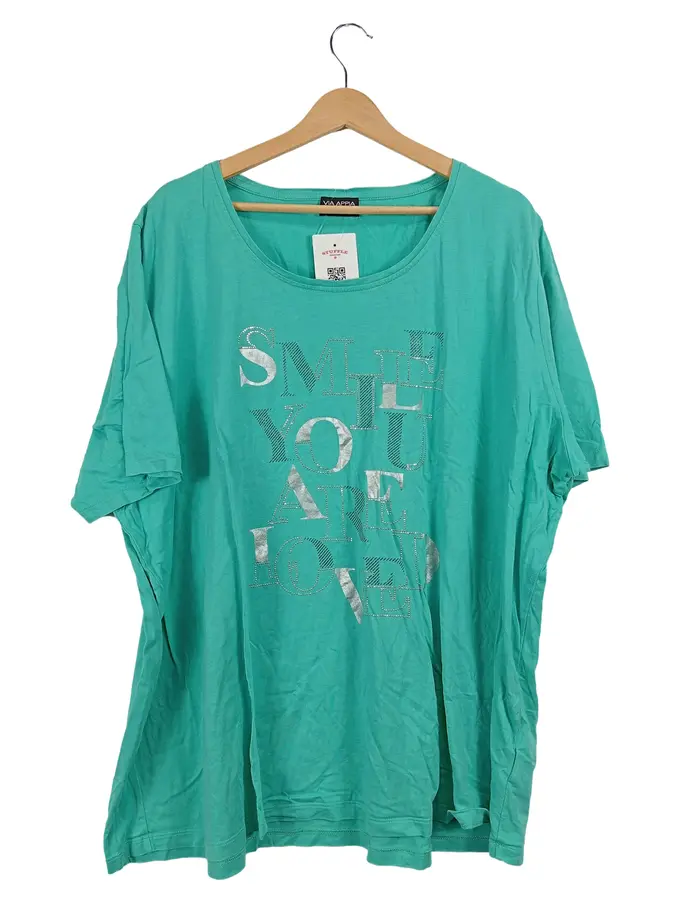 Damen T-Shirt 54 7XL Türkis Schriftzug Glitzer Casual