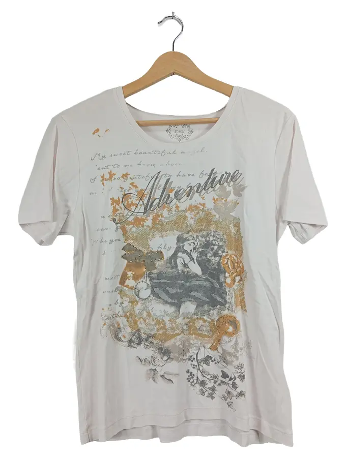 Damen T-Shirt Adventure Print Gr. 44 XXL Weiß Romantisch