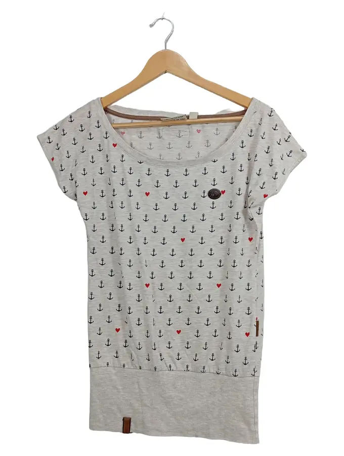 Damen T-Shirt Anker Herzen Maritim Gr. S Beige