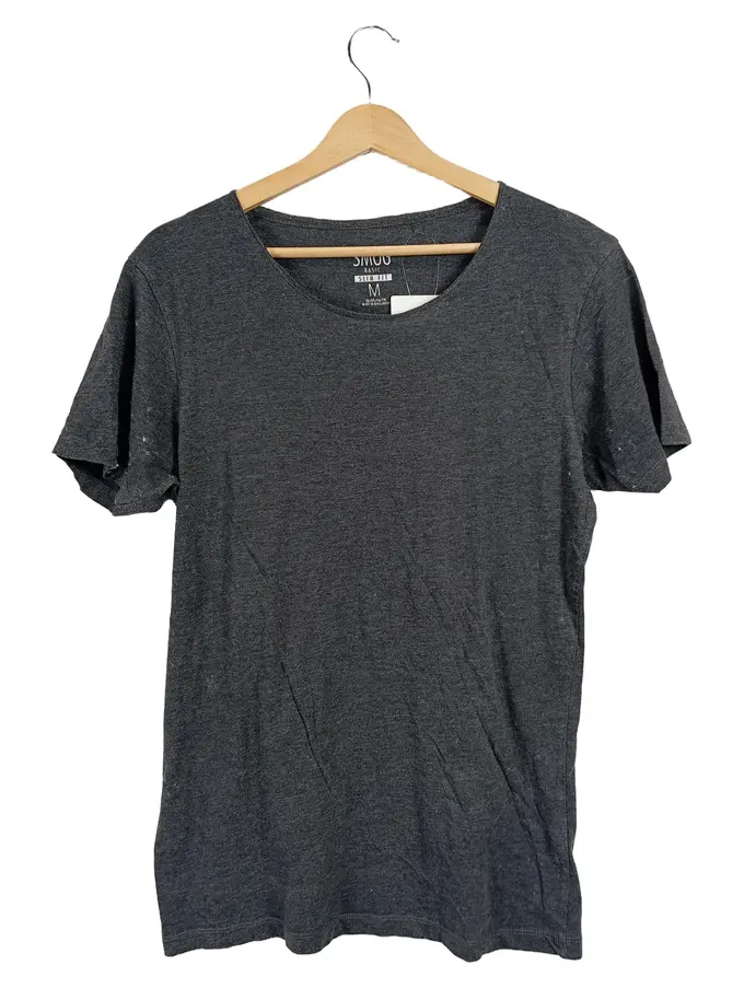 Damen T-Shirt Basic Slim Fit Gr. 38/M Grau Casual Meliert