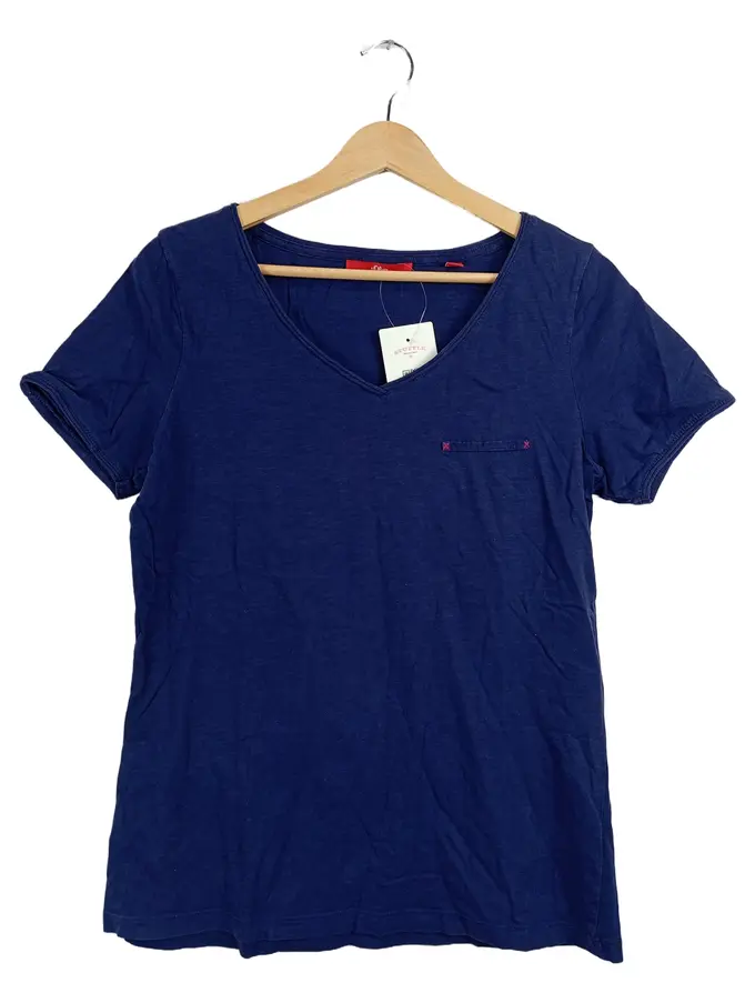 Damen T-Shirt Basic Uni Blau Stickerei Baumwolle Gr. 36/S