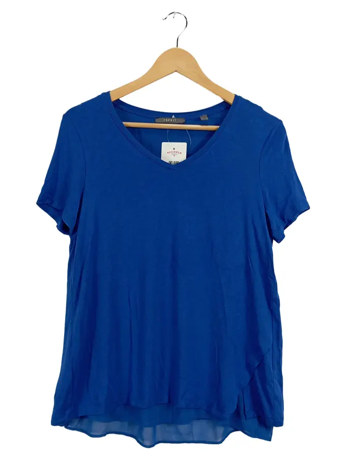 Damen T-Shirt Bluse Gr. M Blau V-Ausschnitt Chiffon-Saum