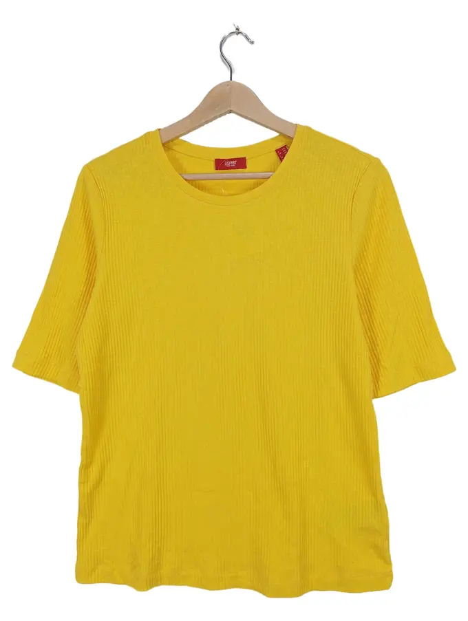 Damen T-Shirt Gelb Rippstrick Gr. XXL Basic Halbarm Baumwolle