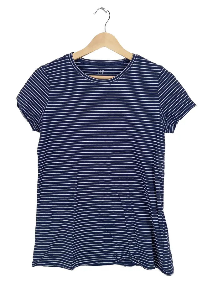 Damen T-Shirt gestreift Gr. 36/S Blau Baumwolle Casual