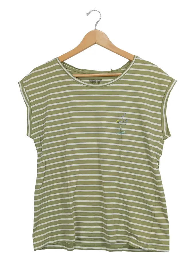 Damen T-Shirt gestreift Grün Gr. 38 Stickerei Casual