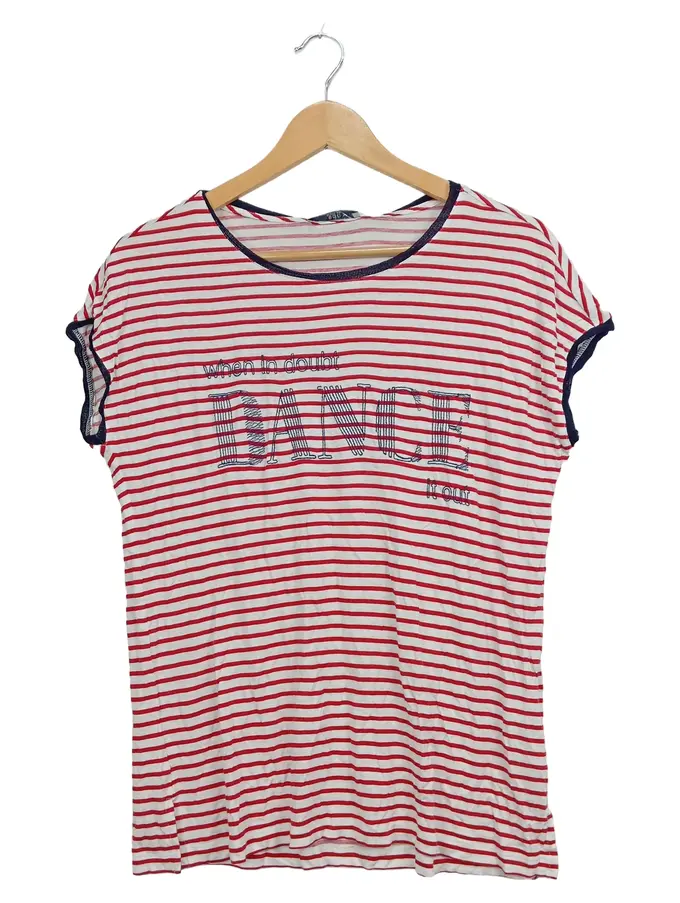 Damen T-Shirt gestreift Schriftzug Gr. 38/M Viskose Casual