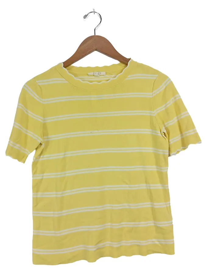 Damen T-Shirt Gr. 34/XS Gelb Gestreift Casual Kurzarm Rippstrick