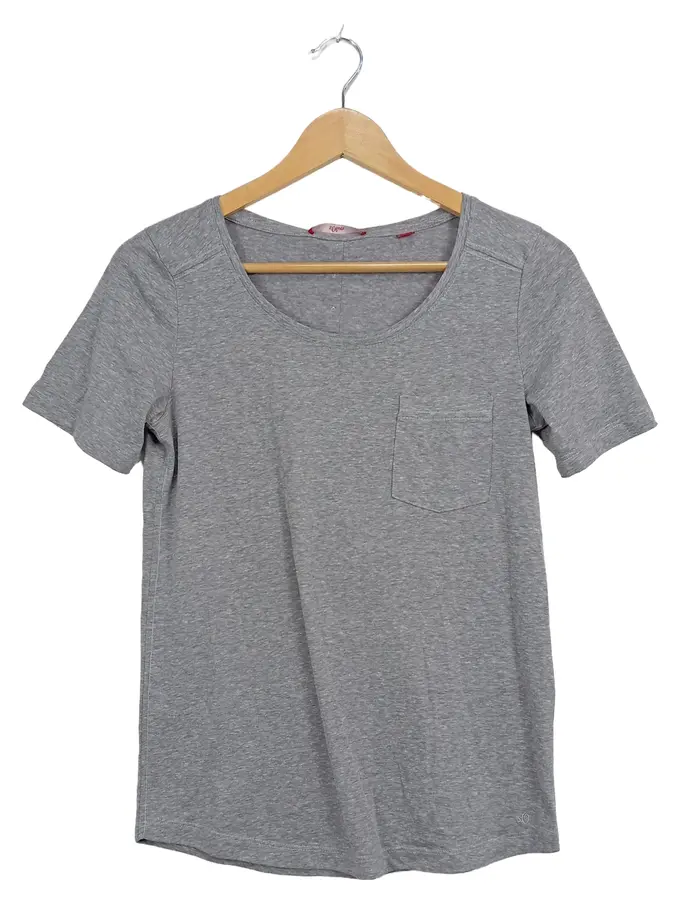Damen T-Shirt Gr. 34/XS Grau Meliert Basic Kurzarm Brusttasche