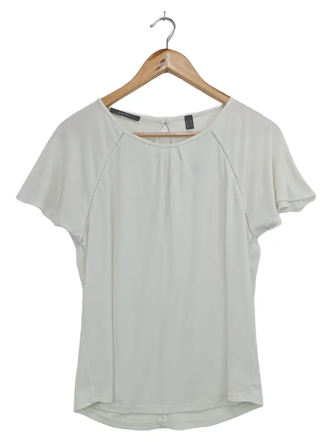 Damen T-Shirt Gr. 34/XS Weiß Elegant Raffungen Bestickt