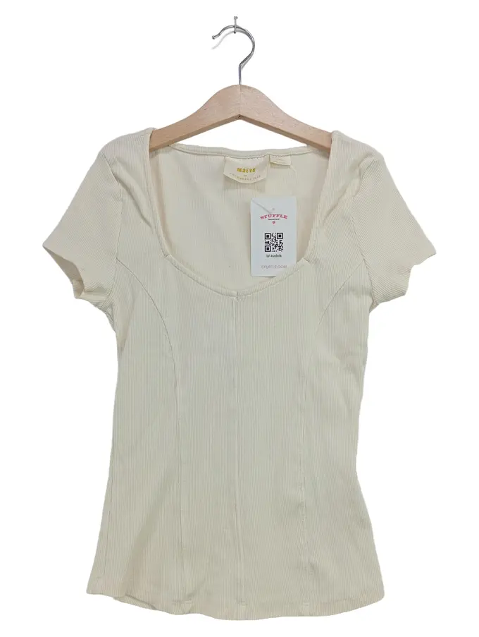 Damen T-Shirt Gr. 34/XS Weiß Rippstrick Klassisch Elegant